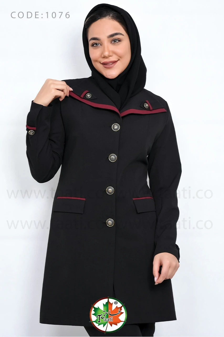 مشکی: برای کارکنان بانک‌ها، مهمانداران و افرادی که در جلسات رسمی شرکت می‌کنند، رنگ مشکی مانتو شلوار اداری مدل پرنیا 1076 بهترین انتخاب است. این رنگ رسمی، ظاهر آنها را همیشه شیک و حرفه ای نشان می دهد.