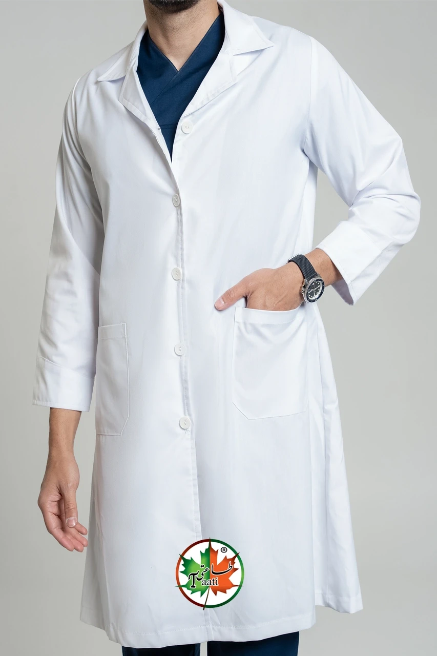 روپوش پزشکی مردانه سفید کد 7011 در سایزهای متنوع (S، M، L، XL، XXL) ارائه می‌شود تا هر فردی با هر اندامی بتواند بهترین انتخاب را داشته باشد.